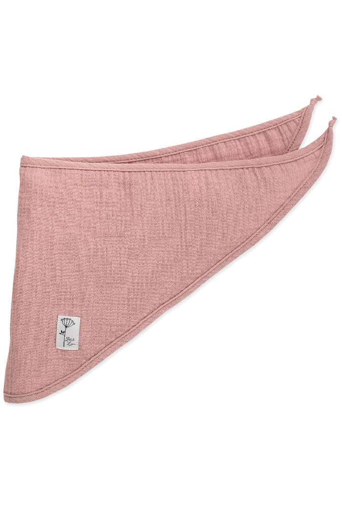 Rosa abgerundetes Neugeborenen Baby Musselin Halstuch Dreieckstuch mit Wiesenblume Doldenblüten Patch & PETIT LOU Print für Mädchen 57 x 22 cm von PINOKIO - Vorderansicht saugstarkes Basic Blumen Sabbertuch unifarben